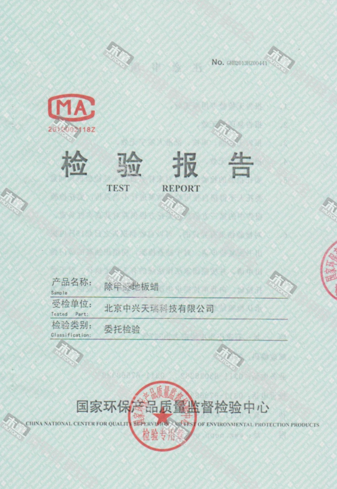 木童除甲醛地板蠟檢測報告